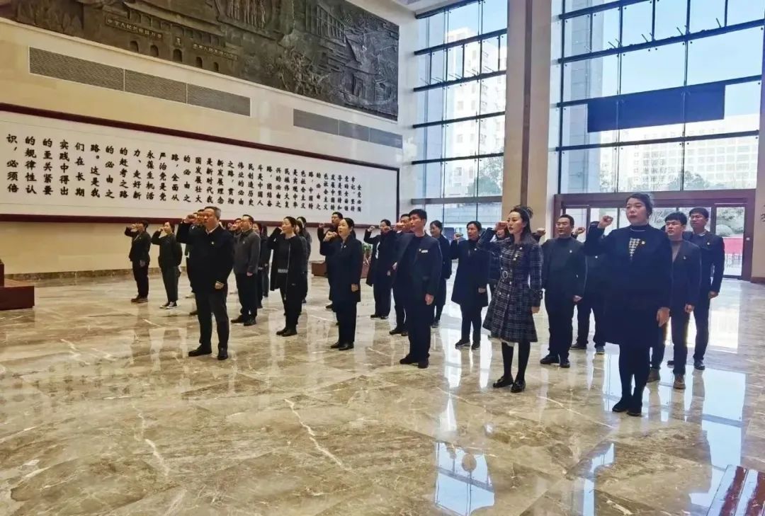 參觀學(xué)習(xí)開(kāi)始前,公司黨委副書(shū)記、副總經(jīng)理成小俊同志帶領(lǐng)全體黨員面對(duì)鮮紅的黨旗,鄭重肅立,高舉右拳,以集體宣誓的方式重溫入黨誓詞。一句句鏗鏘有力的誓詞,表達(dá)著對(duì)黨的絕對(duì)忠誠(chéng)和為黨的事業(yè)奮斗終身的決心。